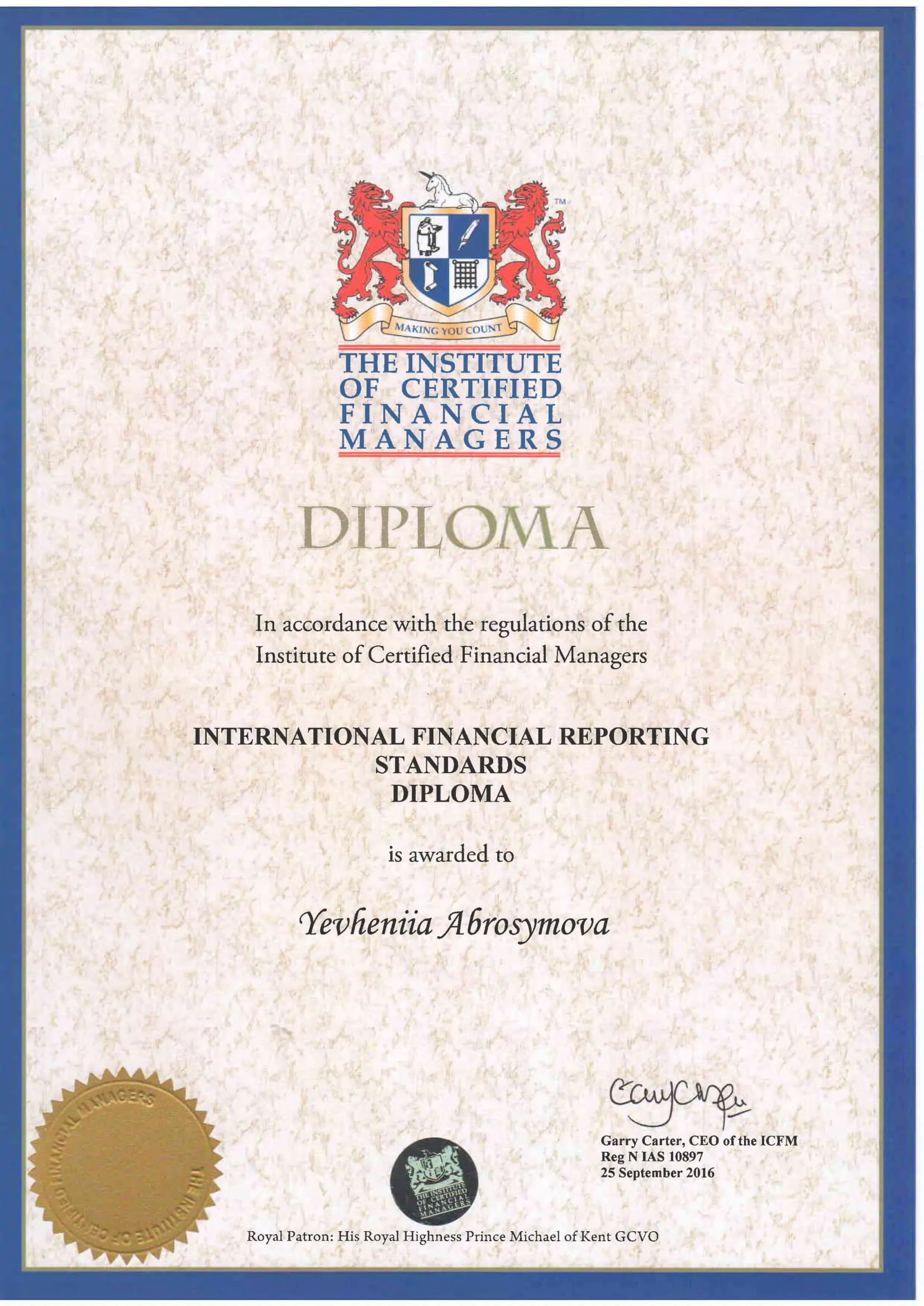 The ISFM DipIFR (UK) Е.Д. Абросимовой от 25.09.2016 г.