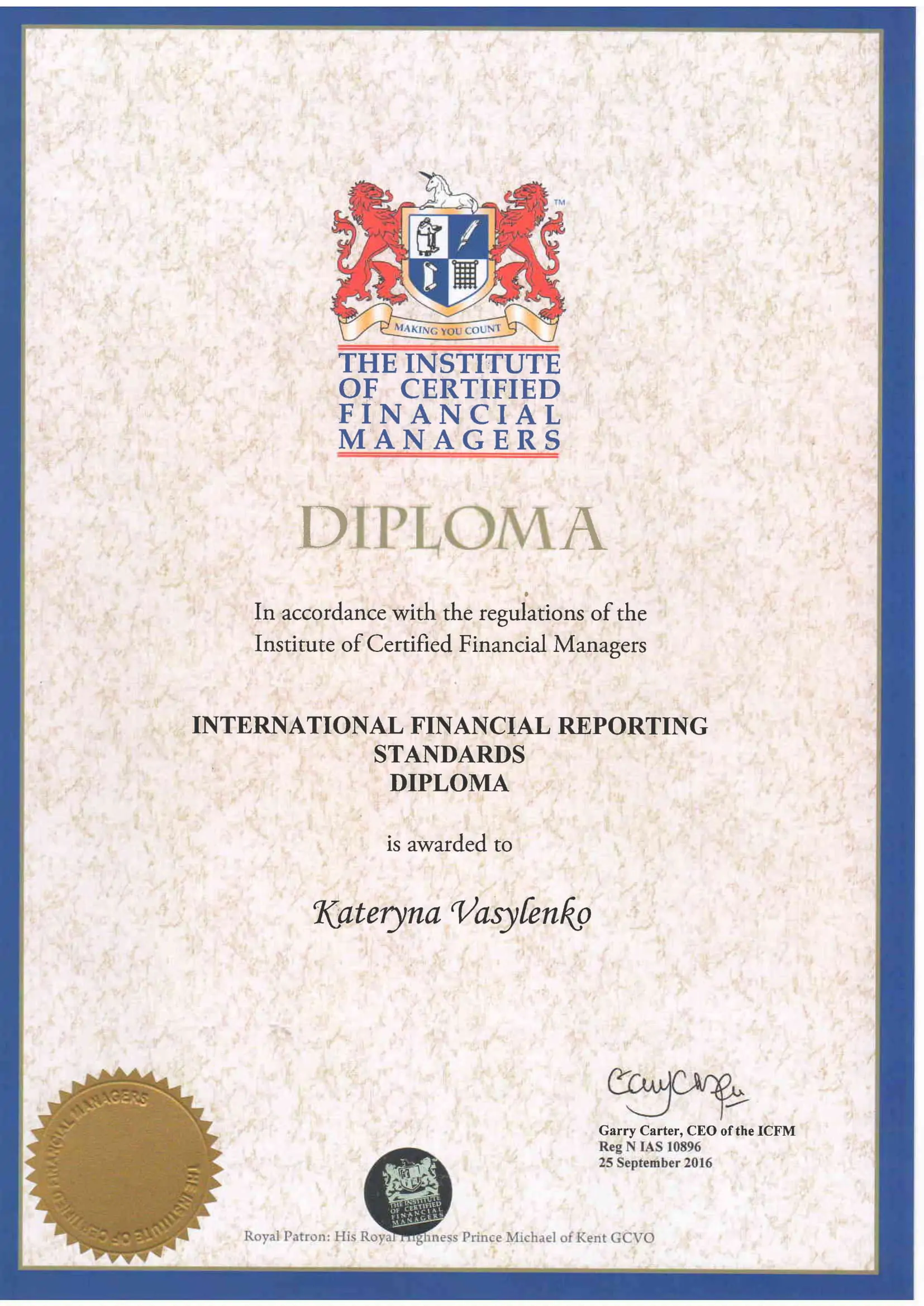 The ISFM DipIFR (UK) Е.С. Василенко от 25.09.2016 г.