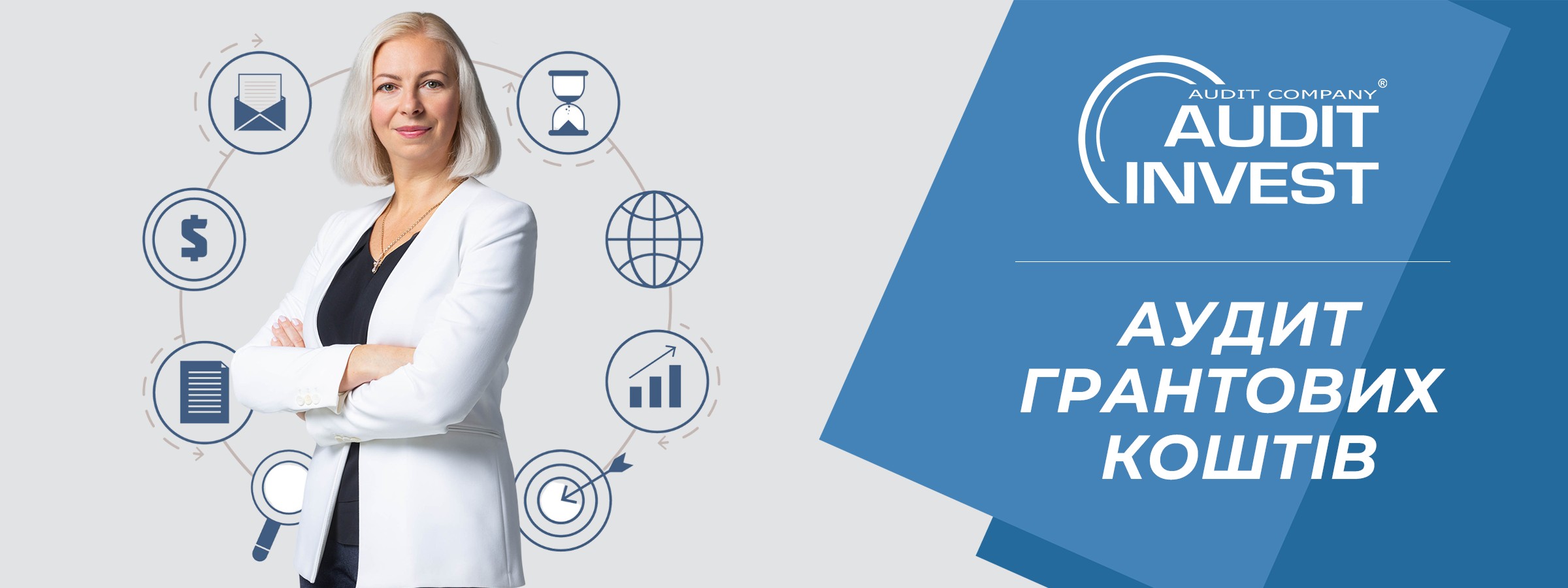 - На вас працює команда сертифікованих аудиторів національної компанії AUDIT INVEST з 20-річним досвідом та бездоганною репутацією.